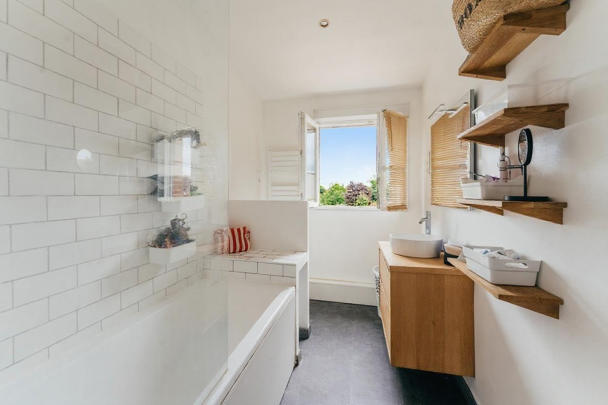 Aux étages 3 grandes chambres dont 1 avec espace dressing, une salle de bain avec baignoire et un second wc.