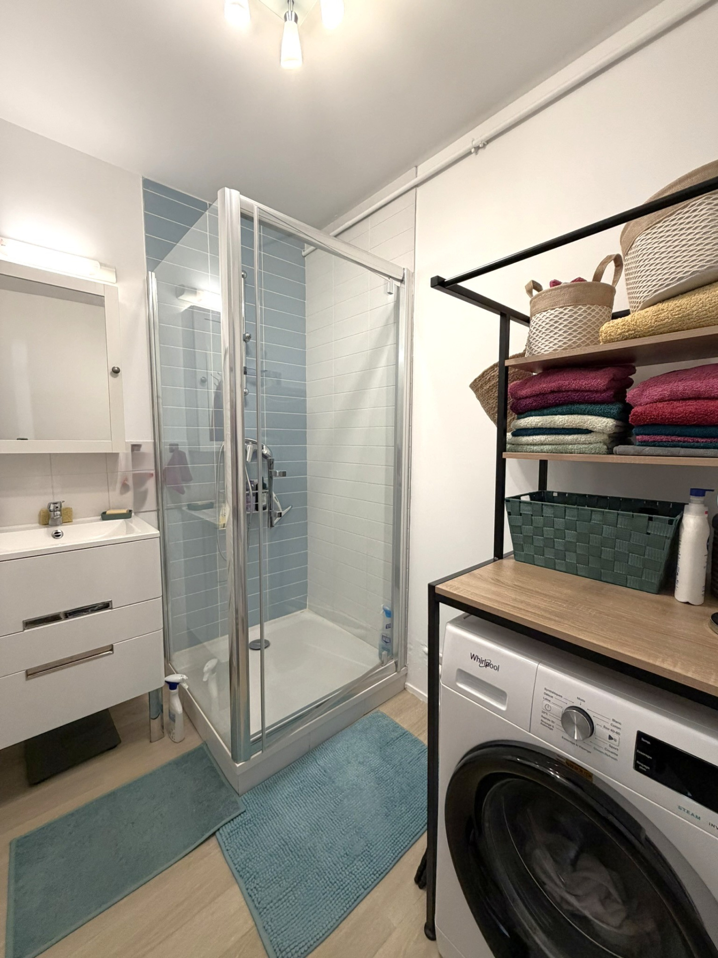 Au 1er étage d’une résidence récente et sécurisée, il se compose d’une entrée avec rangements desservant une pièce de vie lumineuse avec cuisine équipée moderne, de 2 belles chambres, d’une salle de bain et un wc indépendant.