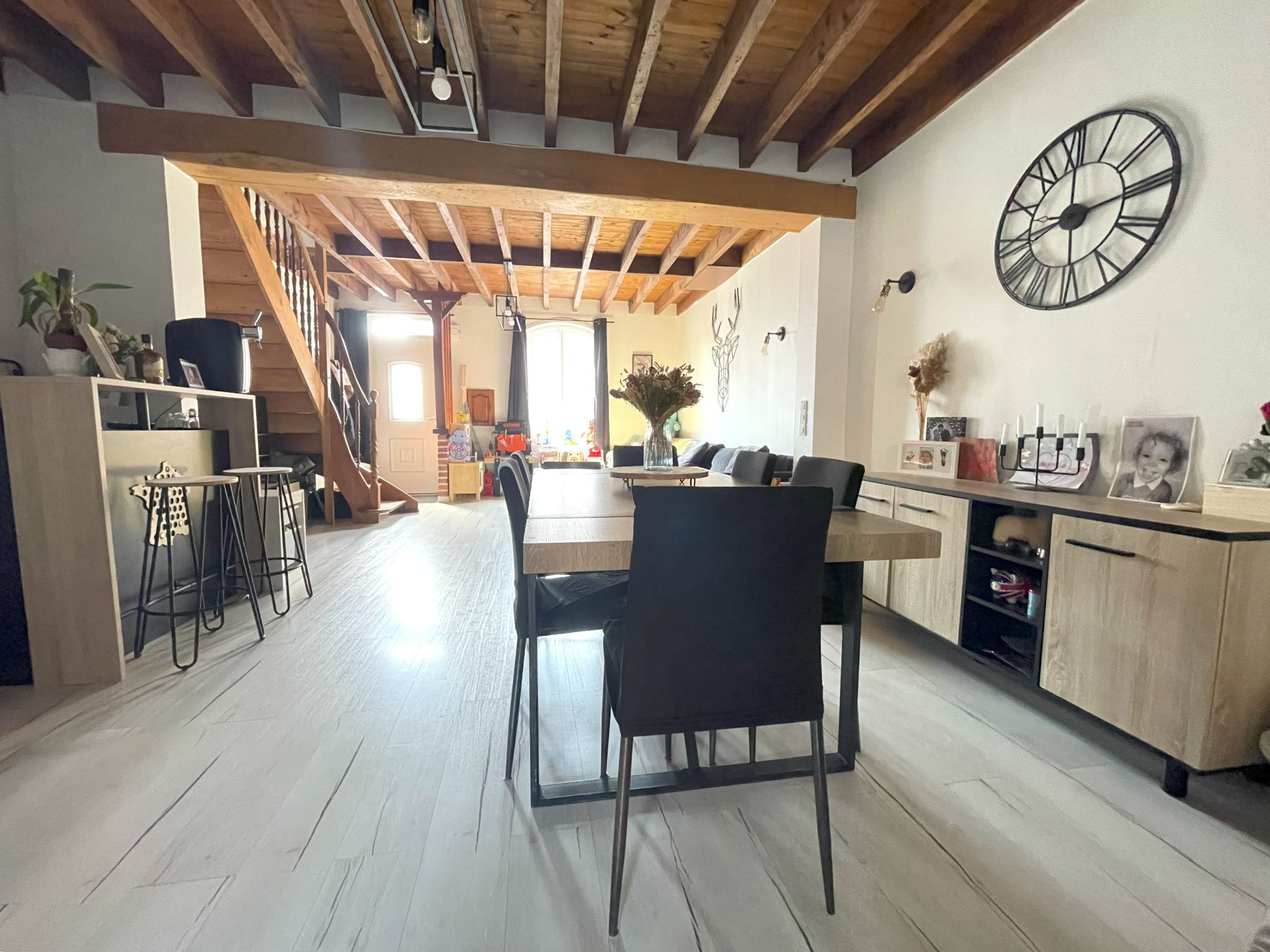 Annoeullin, au sein d’une rue calme à proximité du centre et des commerces, l’agence L’IMMOBILIÈRE DE LA DEULE, vous propose cette jolie maison entièrement rénovée avec gout offrant de beaux volumes !