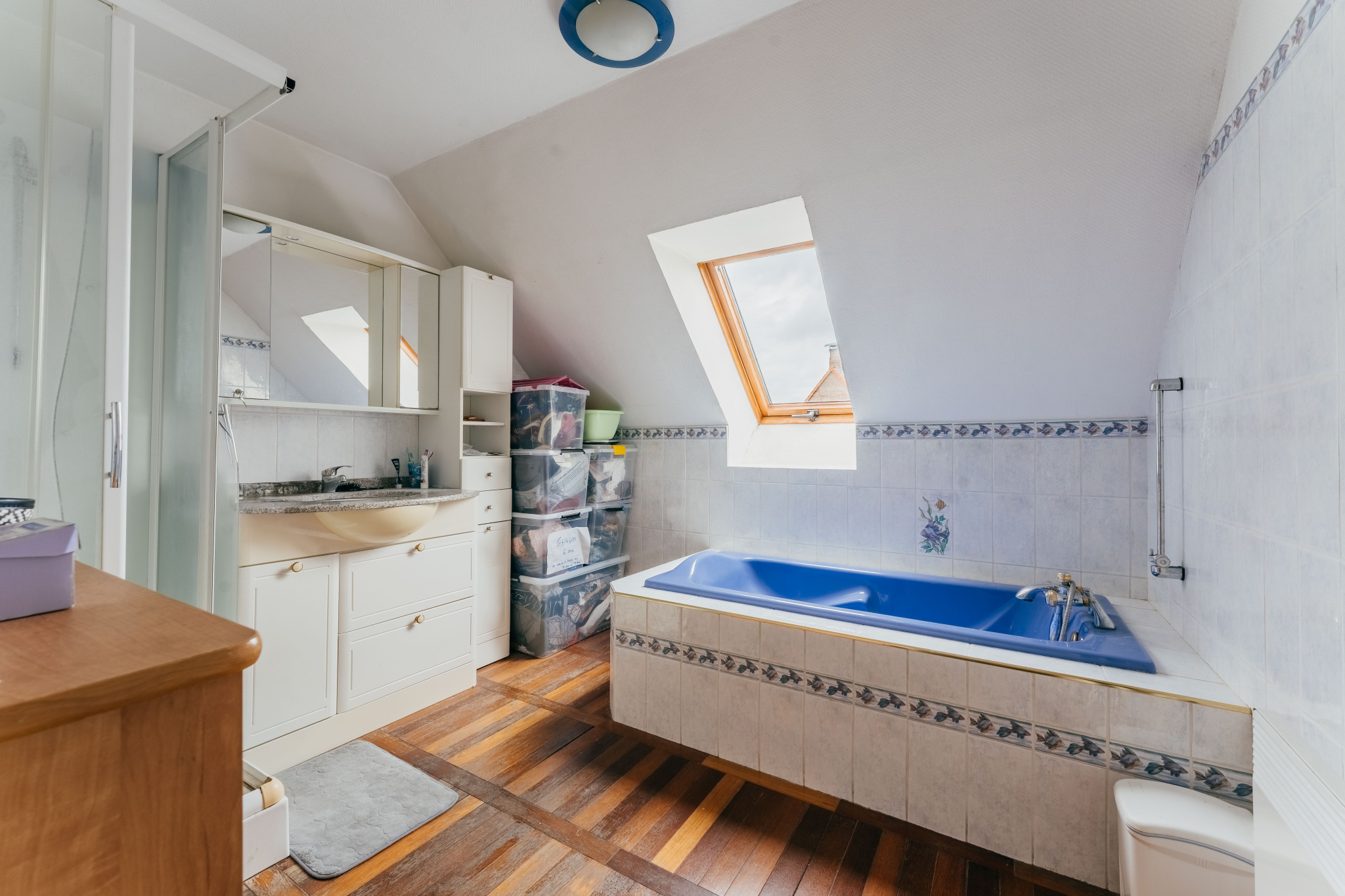 A l’étage, sur le meme palier, vous découvrirez 4 belles chambres, une salle de bain avec douche et baignoire ainsi qu’un second wc séparé.