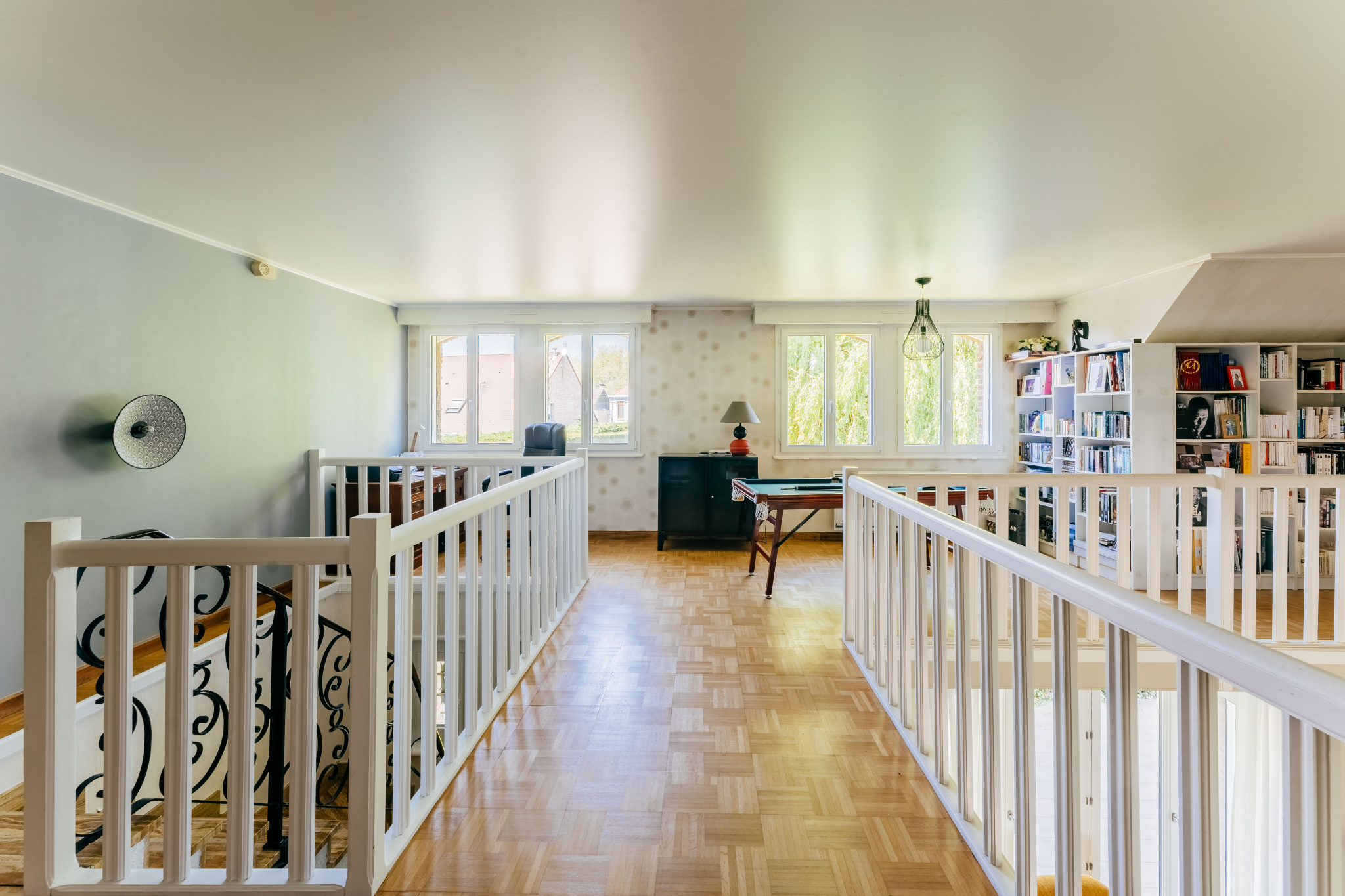 A l’étage, un superbe pallier/mezzanine d’environ 30 m2, dessert 3 grandes chambres, un dressing, et une seconde salle de bain avec espace buanderie.