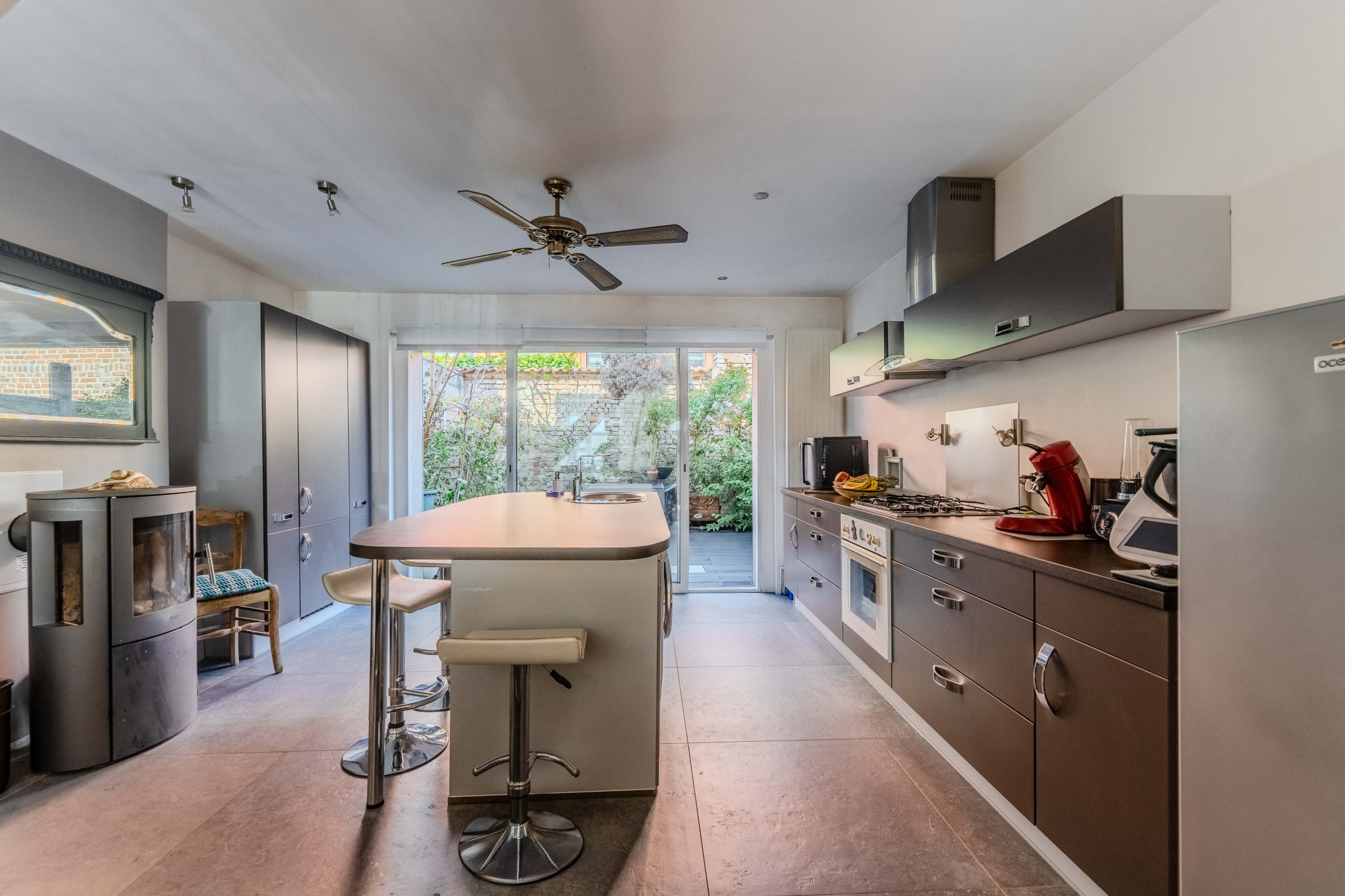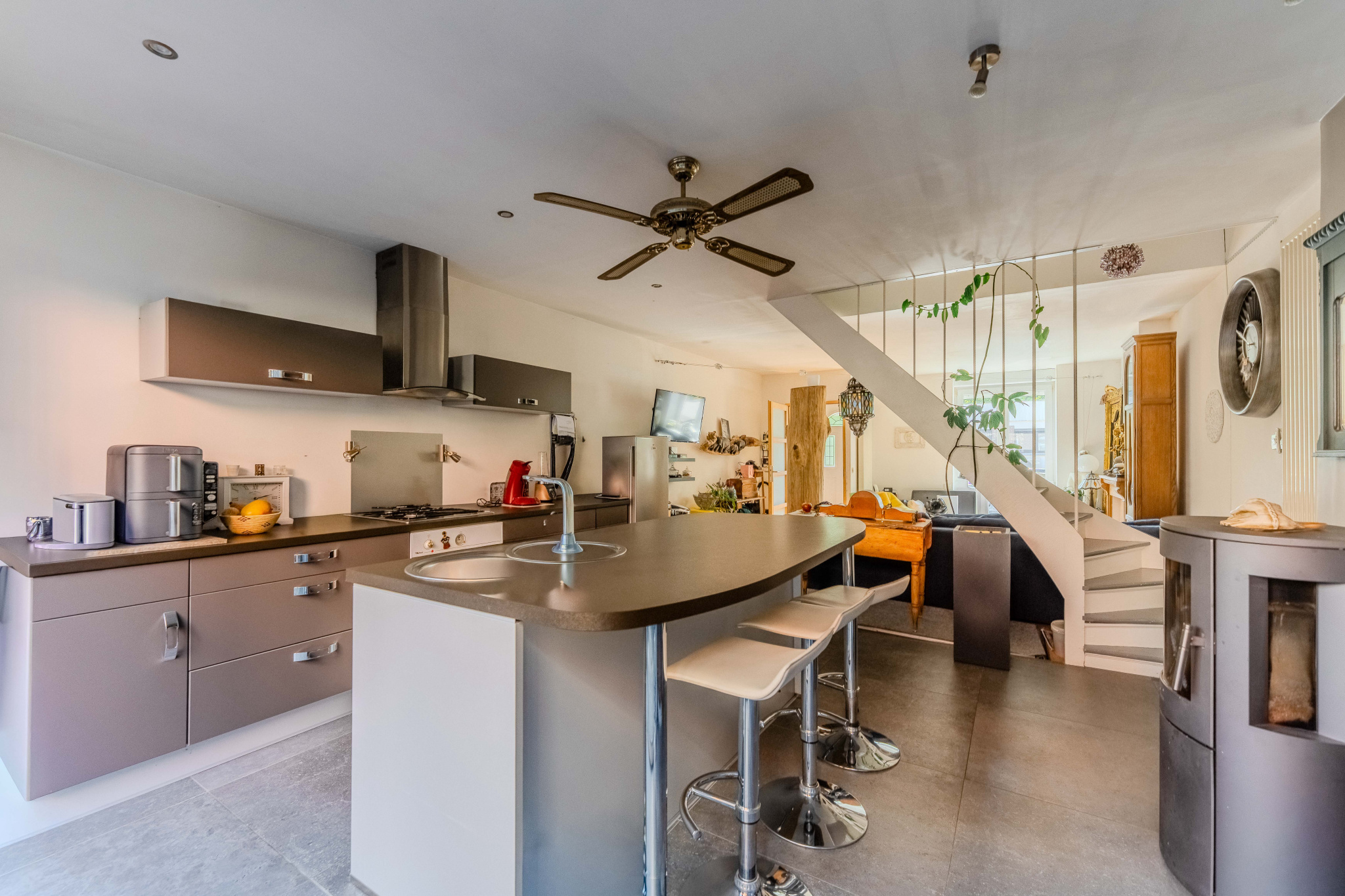 Elle se compose d’une entrée desservant un espace de vie lumineux ainsi qu’une cuisine ouverte avec un îlot central donnant sur une cour extérieure.