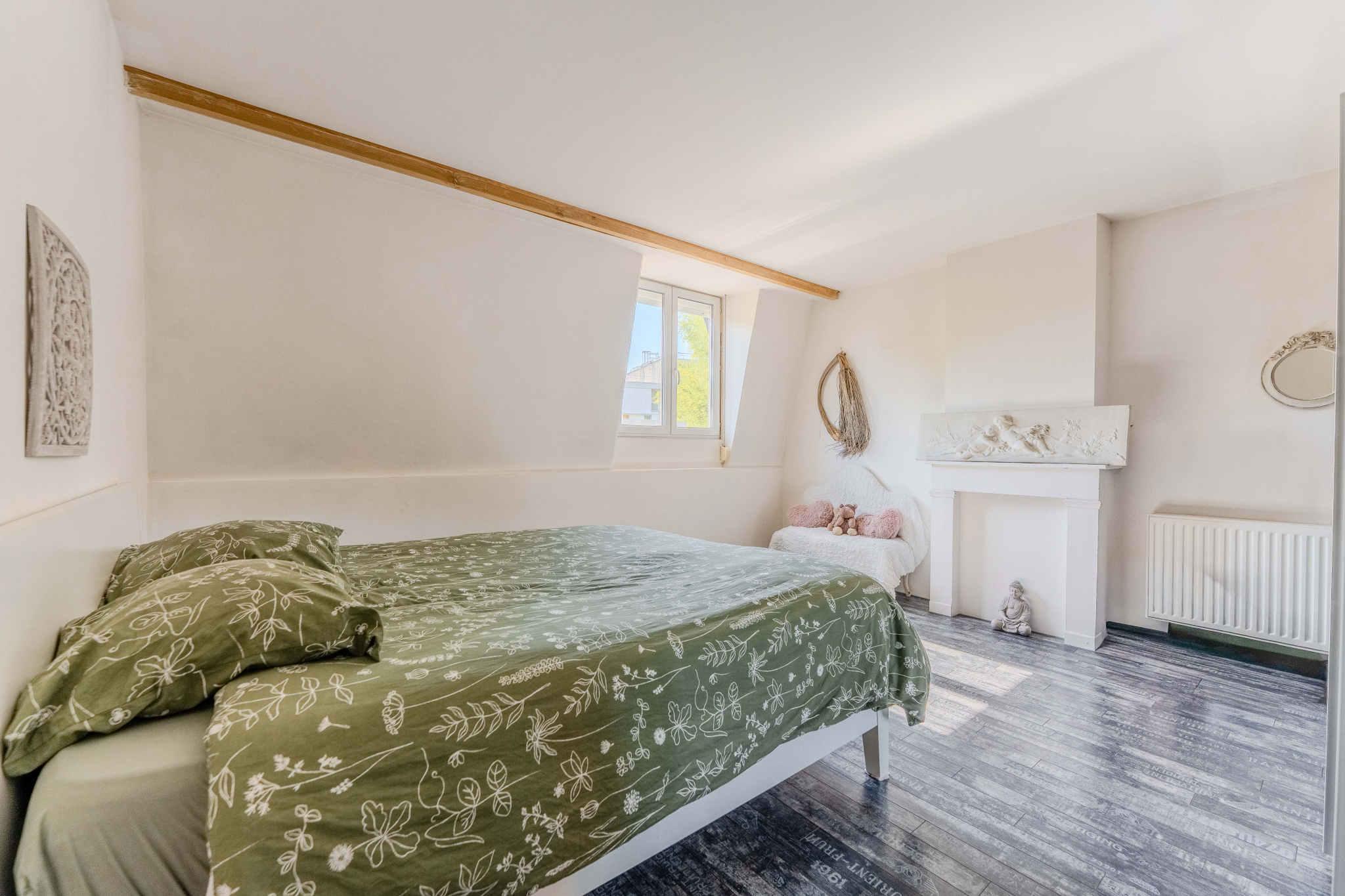 À l’étage, un palier dessert deux chambres, une salle de bain et un WC.