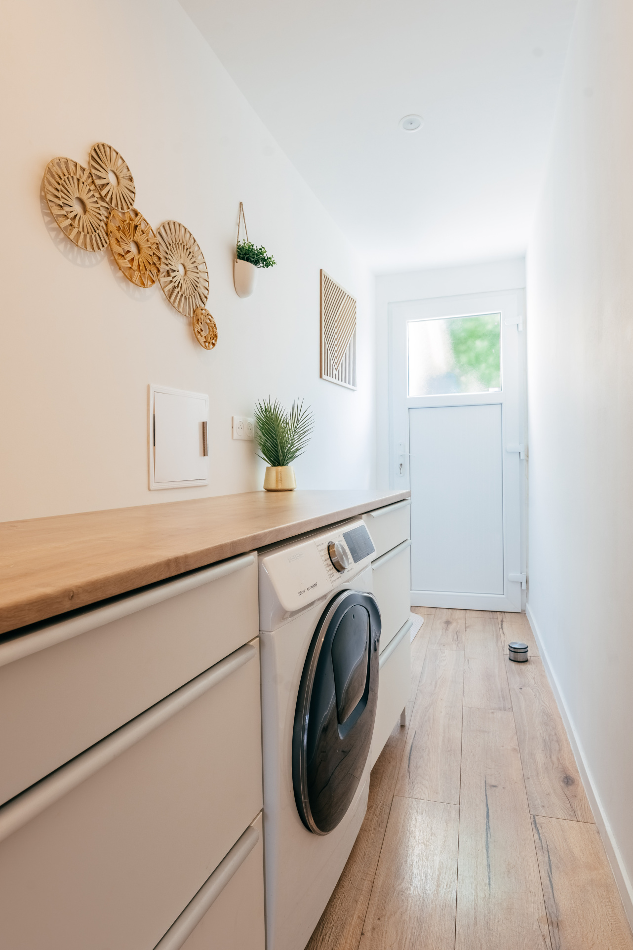 Elle se compose d’une entrée avec rangement, un espace de vie très lumineux avec cuisine équipée ouverte coté rue, une salle à manger et salon avec baie vitrée donnat sur le jardin. Vous disposerez egalement d’une buanderie et un wc.