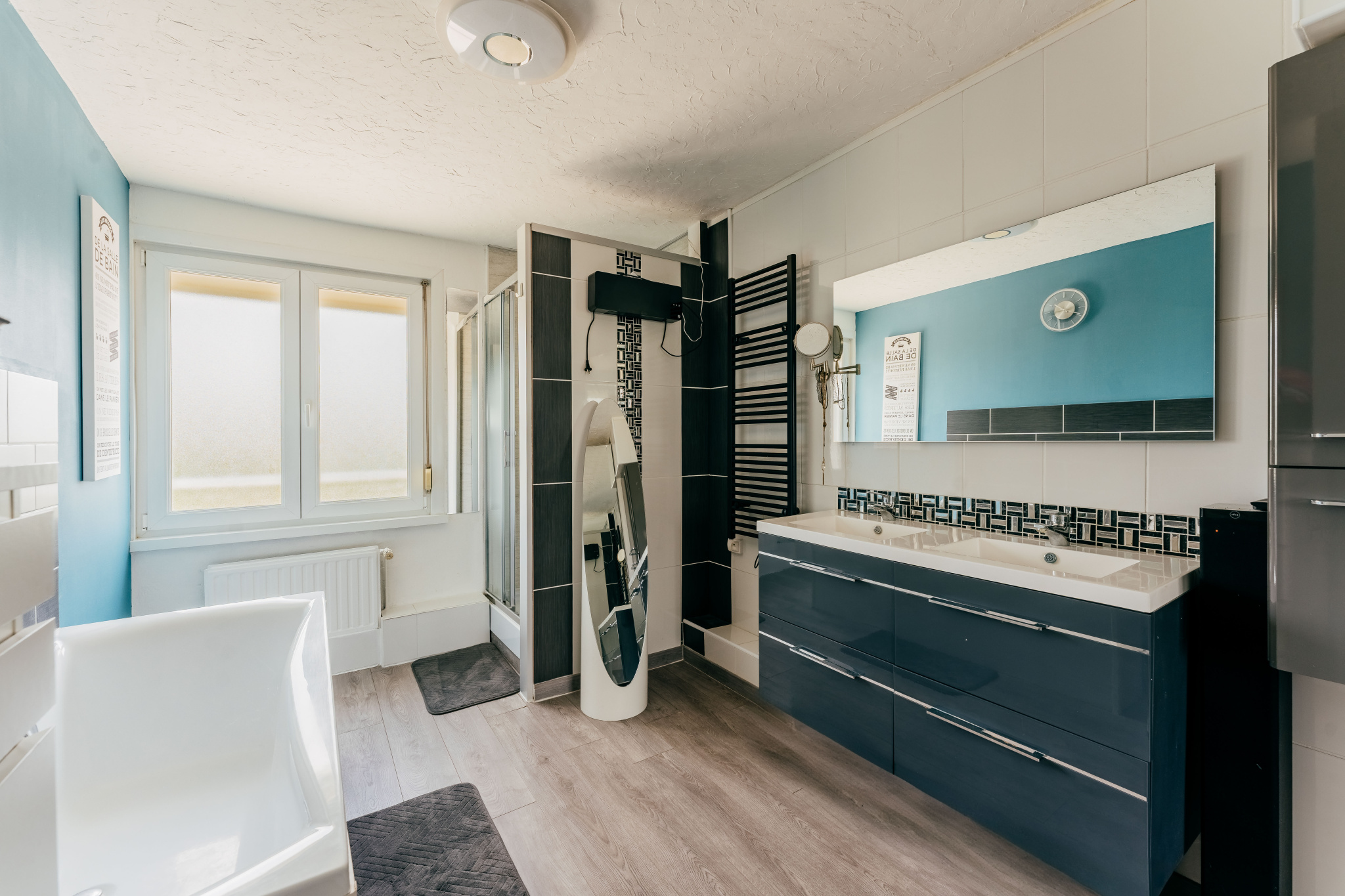 Aux étages, 3 belles chambres et une grande salle de bain avec baignoire et douche !
